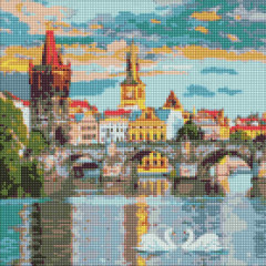 Алмазная мозаика по номерам на холсте 40×40 см — Идейка АМО7217 «Вечерняя Прага».