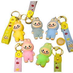 Брелок резиновый Лабубу Labubu мохнатый гигант 7см с лентой, ассорти