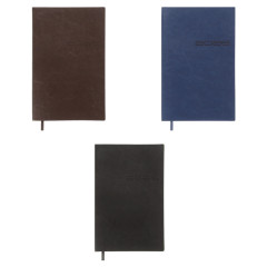 Гибкая обложка еженедельника Ideal выполнена из искусственной кожи с выразительным бархатным покрытием. Две функциональные шильды на лицевой и оборотной стороне обложки с углублениями для поперечной резинки обеспечивают удобную и надежную фиксацию дневника в закрытом состоянии. Дизайн гармонично дополняет и обогащает тонированный золотым цветом срез внутреннего блока и тиснение золотой фольгой рока и надписи на лицевой стороне обложки.