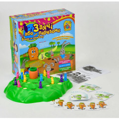 Цель игры: добраться первым до морковки на вершине холма, обойдя все препятствия на своем пути. Игра рассчитана на от 2-х до 4-х игроков, которым дается набор из 4-х зайцев определенного цвета. Каким будет ход каждого участника, определит бревно карт. Вытаскивайте по одной карте, она укажет вам, что делать дальше: сделать ход на 1, 2, 3 участка вперед или покрутить морковку. Заяц может перепрыгнуть через необходимое расстояние и не останавливаться на каждом участке.
