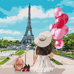 Картина раскраска по номерам на холсте - 40*40см Идейка КН4756 Девушка с шариками