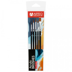Набор кистей 5шт Arteo №4 синтетика круглая (№1,3,4) плоская (№4,8) к.р. 187104