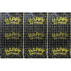 Набор праздничный Фотозона шторка квадрат 1*2м Happy Birthday №13002-BK (черная)