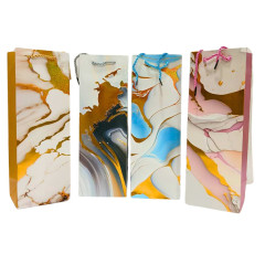 Пакет подарочный бумажный 35*12*9см Бутылочный с фольгой Мрамор №7932