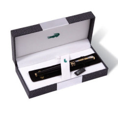 Стильное позолоченное перо, колпачок и поверхность ручки украшены тонкими гравировками в виде фирменного логотипа.