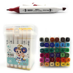 Скетч маркеры для рисования Zishu двусторонние для бумаги набор 36 шт Mouse ZS-222-36 в пластиковом футляре