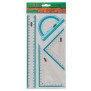- Набір: лінійка 25 см, кутник 45 ° і 90 °, кутник 60 °, транспортир 180 °.