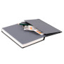 Блокнот для графіки в твердій чорній обкладинці із закругленими краями, книжковий формат. Містить 112лістов якісної білого паперу «Canson Crobart» щільністю 96 гр / м2. Призначений для графіки сухими матеріалами: олівцями, пастеллю, вугіллям. На внутрішній стороні