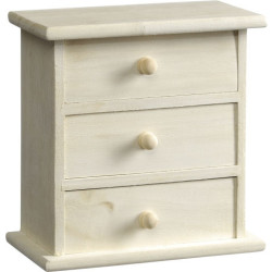 - Прямокутний міні-комод з трьома висувними ящиками з натуральної деревини.
