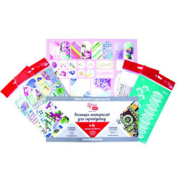 - Колекція складається з: 6 стор. двостороннього паперу, 2 самоклеючих висічок, самоклеючий фоновий трафарет і чіпборд у відповідній стилістиці.