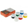 - 6 кольорів по 20 мл (жовтий, червоний, чорний, білий, синій, зелений)