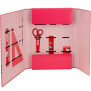 Всередині папки є гумки-держателі і малюнки-підказки для розміщення: лінійки, лінійки-трикутника, 2 олівців, ножиць, клей-олівець і 2 гумок.