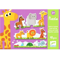 Гра-пазл Великий-маленький являє собою ряд з тварин, який потрібно зібрати від найбільшого до найменшого.