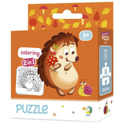 Пазл 2в1 Їжачок Дитячі пазли - чудова гра, яка розвиває з раннього віку уяву і дрібну моторику. На цьому пазлі барвиста картинка їжачка з равликом які збирають грибки.