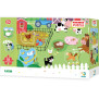 Щоб скласти пазл, малюкові потрібно правильно з'єднати 18 великих деталей, а потім знайти на ній місце картками із зображенням тварин.