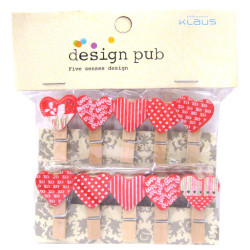 Прищіпки міні деревяні ООПТ Набір 10шт 3,5см Серця з малюнком 1937