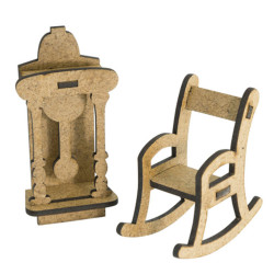 - У наборі: крісло-качалка - 60х30х60 мм, годинник - 75х40х25 мм