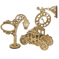 - У наборі: карета - 55х85х35 мм, годинник - 65х70х10 мм, ліхтарний стовп - 90х75х30 мм