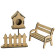 - У наборі: паркан - 40х60х10 мм, лавочка - 50х60х40 мм, шпаківня - 80х40х25 мм