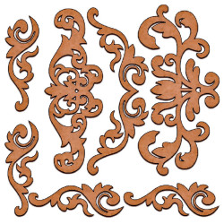 Набір декоративних елементів для оформлення шедоубоксов, органайзерів і інших арт-об'єктів Всі деталі зібрані на одній пластині. Заготівля виконана з ДВП товщиною 3 мм, матеріал не вимагає додаткової шліфовки. Фігурки можна фарбувати Деко- акрилом, гуашшю, Деко-глазур'ю, декорувати Скрапбумага.