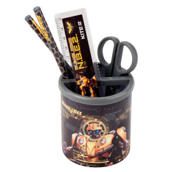 Настільний канцелярський набір Kite Transformers BumbleBee Movie TF19-205 - це відмінний помічник в організації робочого місця для школяра. Міцний металевий стаканчик круглої форми складається з 3-х відсіків з пластикової окантовкою. Його висота - 9 см, діаметр - 7,5 см. Всі складові об'єднує яскравий дизайн з героєм фільму Бамблби