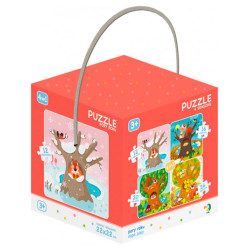 Пазл 4 в 1 "Пори року" української ТМ Додо в подарунковій об'ємній коробці-кубі з ручкою.
