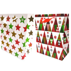 Пакет подарунковий паперовий 42*31*12см Новорічний ялинки, зірочки