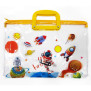 Папка-портфель В4. Яскрава і містка папка може вміститися в шкільному рюкзаку, а може використовуватися як самостійний портфель, в який помістяться і нотні зошити, і альбом для малювання, і проекти для моделювання, і канцелярське приладдя. Полімер, з якого виготовлена папка, запобігає намокання і деформацію паперів. Сама по собі папка дуже легка і не збільшить істотно вага шкільного рюкзака.