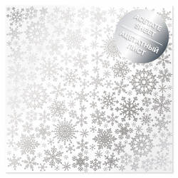 Ацетатний лист-прозора плівка з фольгуванням (срібним тисненням) Silver Snowflakes. Ця декоративна плівка широко використовується в скрапбукінге, кардмейкінге, як елемент декору, для створення конвертів, подарункової упаковки, роздільників для альбомів і блокнотів.