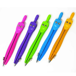 Металевий циркуль School-Max 1001BC представлений в PVC чохлі. Виріб призначений для креслення кіл і дуг кіл, також може бути використано для вимірювання відстаней, зокрема, на картах. Також, використовується в геометрії, креслення, для навігації або створення правильного геометричного малюнка.