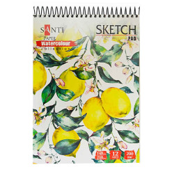 Скетчбук від бренду SANTI з серії Paper Watercolour Collection складається з 12 аркушів спеціалізованої паперу з тисненням. Папір ідеально підходить для акварельного живопису, а також для малювання пастеллю, вугіллям, олівцями