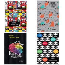Словник-тетредь для запису іноземних слів представлений в асортименті яскравих дизайнів надихаючих на вивчення нової лексики. На якісному папері з зручною лініюванням комфортно записувати нові слова, а при необхідності швидко повертатися до пройденого матеріалу. Тверда обкладинка з ламінуванням захищає записи і надовго зберігає акуратний зовнішній вигляд зошита. На допомогу учневі на форзаці надруковані англійська, німецька, французька та польська алфавіти.