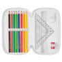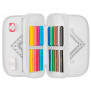 Пенал Herlitz Triple Unicorn з наповненням 31 предмет (50026203) Пенал Herlitz Triple на 3 відділення з наповненням виконаний у формі жорсткої книжки. Відділення не залежні один від одного закриваються окремими блискавками. Є еластичні петлі для кріплення письмового приладдя. Верх пенала виконаний з вологостійкого поліестеру, а кольорова підкладка з ПВХ, тому її з легкістю можна помити.