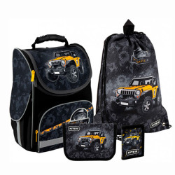 1. Каркасний рюкзак Kite K20-501S-1 strong> для хлопчиків 6-10 років виконаний з міцного поліестеру з яскравими рудими деталями та зображенням позашляховика. Сподобається впевненим в собі хлопчакам, які мріють підкорювати незвідані куточки планети. Рюкзак виконаний у формі короба. Це ідеальна модель для першокласника, адже навіть при хаотичної упаковці зошитів в рюкзаку буде панувати п