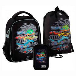 Набір рюкзак + пенал + сумка для взуття Kite 555 Hot Wheels. Шкільний комплект складається з: