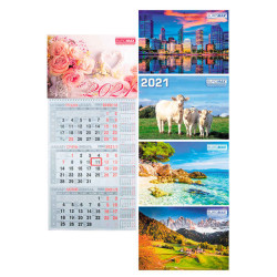 Календар настінний квартальний 2021 Buromax на 1 спиралі 29,7*63см BM.2106