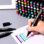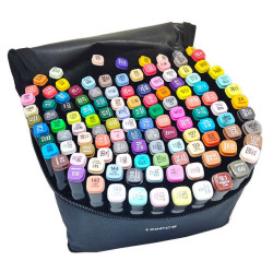 Набори професійних двосторонніх маркерів для скетчінга в чохлі. Міцний корпус маркерів виконаний в чорному кольорі. Наші яскраві маркери підходять для скетчінга, графічного дизайну та другіз видів творчості. Маркери двосторонні. Одна сторона класичної форми шириною 1мм, друга - скошена 7мм. Швидковисихаючі, водостійкі чорнило на спиртовій основі не токсичні і не псують поверхню паперу. Маркери підходять для використання на всіх видах поверхонь, на папері, полотні, картоні, фотографіях, пластику, склі, дереві, тканині.
