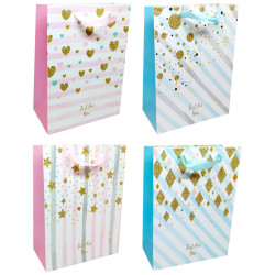 Пакет подарунковий паперовий 18*23*8см ООПТ Візерунки на смугастому тлі з глітером 104-S