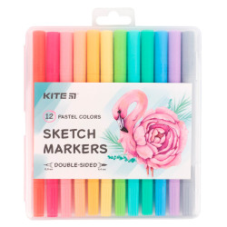 Скетчмаркери Kite K22-045, 12 шт. – чудовий набір для творчості, за допомогою якого ви створите унікальні малюнки. Набір знадобиться дітям та підліткам, які професійно займаються у художніх школах та тим, хто просто любить малювати. Широка палітра кольорів, спеціальні чорнила на водній основі і подвійний пишучий вузол дозволяють працювати в різних техніках, робити ефектні швидкі ескізи і замальовки. Скетчмаркери незамінні для тих, хто захоплюється леттерінгом та каліграфією. Вони неймовірно популярні для створення трендових тревел-скетчів, міських етюдів, ескізів одягу, стилізованих портретів, коміксів та фанфіків. Допоможуть красиво прикрасити особистий щоденник, блокнот, листівку чи шкільну стінгазету. Два вузли, що пишуть, дозволяють реалізовувати найрізноманітніші задуми і відчувати максимальну свободу творчості. Пишучий вузол у формі пензлика створює широку соковиту лінію. Він ідеальний для заливання фону та великих ділянок малюнку. Тоненький (лінер) – для опрацювання дрібних деталей та контурів.