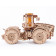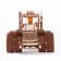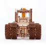 Механічний дерев'яний 3D-пазл повнопривідного трактора Кіровець К-7М від EWA Eco-Wood-Art. Трактор має гумову стрічку, яка змушує трактор рухатися вперед і назад, муфту вільного ходу, систему старт-стоп і гумовий механізм відкриття капота, який може показати реалістичний шестициліндровий рядний двигун. Двері можуть відчинятися і зачинятися.