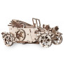 Механічний конструктор, збірна 3D-модель у вигляді автомобіля початку ХХ століття. Модель оснащена гумомотором з механізмами заводки, запуску та зупинки, відкриваються двері та регулюється рамка лобового скла.