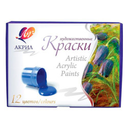 Набор акриловых красок ЛУЧ. Краски предназначены для выполнения художественно-декоративных и оформительских работ. Подходят для росписи различных материалов и поверхностей (гипс, глина, стекло, дерево, бумага, картон, керамика). Имеют насыщенный цвет и хорошо смешиваются между собой. Разводятся водой. Быстро сохнут на поверхности.
