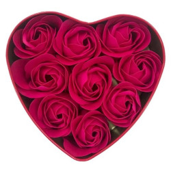 Усередині ароматичне мило у формі бутонів троянд. Скринька металева зі з'ємною кришкою. На кришці – бантик з атласної стрічки та наклейка з написом "I Love You" у вигляді серця на світлому фоні з золотим обідком.