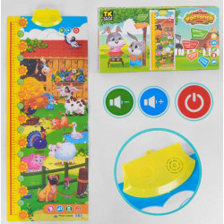 Гучність звуку в інтерактивному плакаті «Весела ферма» регулюється до потрібного рівня. Спеціальне кріплення на задній стороні ростоміра дозволяє розмістити гру на столі або повісити на стіну в дитячій кімнаті. Виконаний плакат з полімерних матеріалів. Інтерактивний плакат обладнений сенсорними кнопками, а також вологостійкої поверхнею, яка продовжує термін його служби.