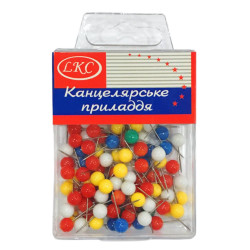 Кнопки канцелярські кольорові "Кулька" 1018 в пластиковому футлярі.