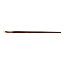 Кисть овальная из белого волоса синтетики. Стандартная выставка рабочей части. Белоснежный средне упругий волос, который включили в себя все три важных показателя: способности образовывать острый кончик, упругости волосяного пучка, контролю над текучестью краски. Кисть представлена на длинной ручке. Универсальная кисть, ей можно писать как обычной плоской кистью и, в то же время, в перпендикулярном положении к поверхности - как круглой. Эти кисти используют для перехода одного цвета в другой.