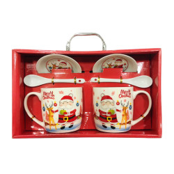 Набір Новорічний керамічний Чашки 2шт 350мл, ложечки та блюдця HK-651-B у валізціі