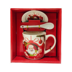 Набір Новорічний керамічний Чашка 350мл, ложечка та блюдечко HK-1245