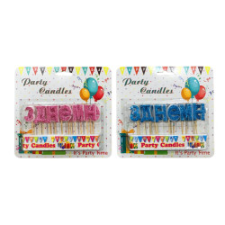 Свічки-набір для торта Party Candles Літери 'З ДНЕМ НАРОДЖЕННЯ' (укр) з глітером, рожеві та блакитні.