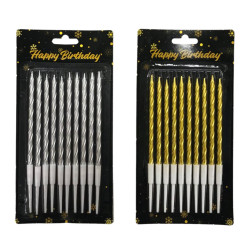 Свічки-набір для торта Party Candles 10 свічок по 10см Спираль золото та срібло WB-10